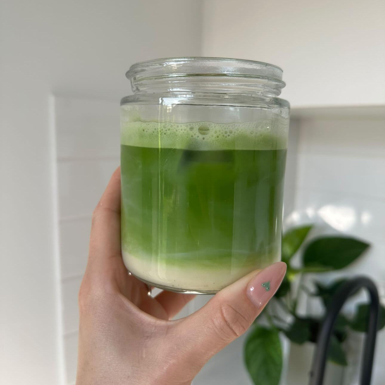 4. Whisk fast with bamboo whisk or milk frother until matcha dissolves fully and frothy.
