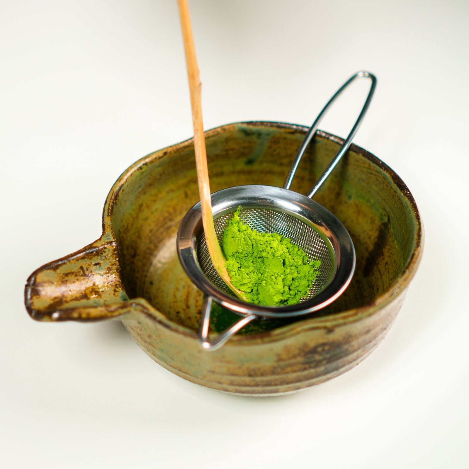 Prepare 1 scoop Matcha Powder to remove clumps